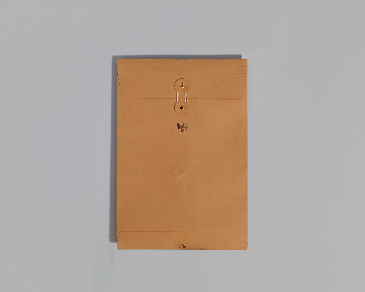 - 23x33 cm hand numbered envelope with Sovrasensibile logo in black handmade stencil and Antistandard black logo stamp
